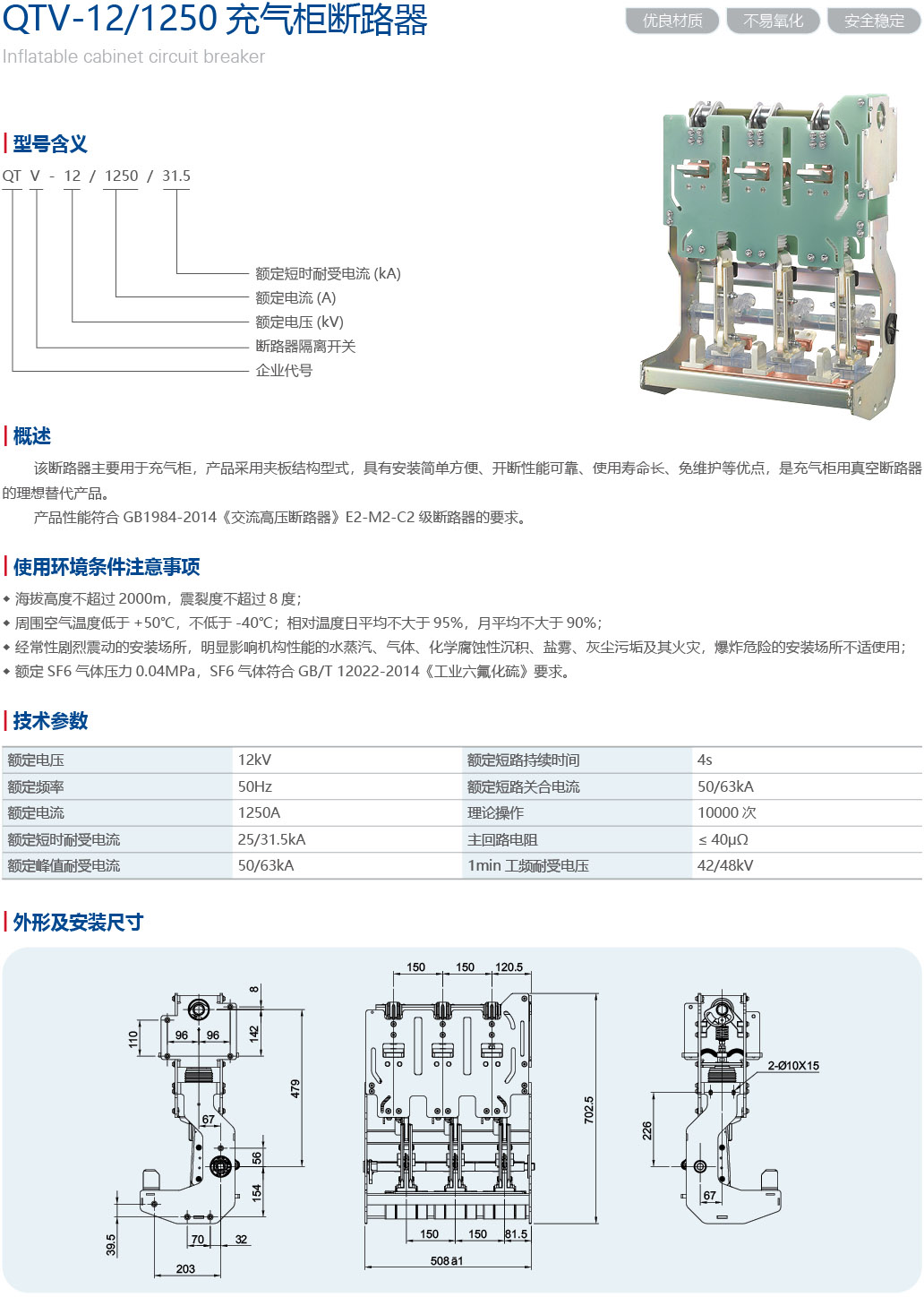 QTV-12/1250 充气柜断路器