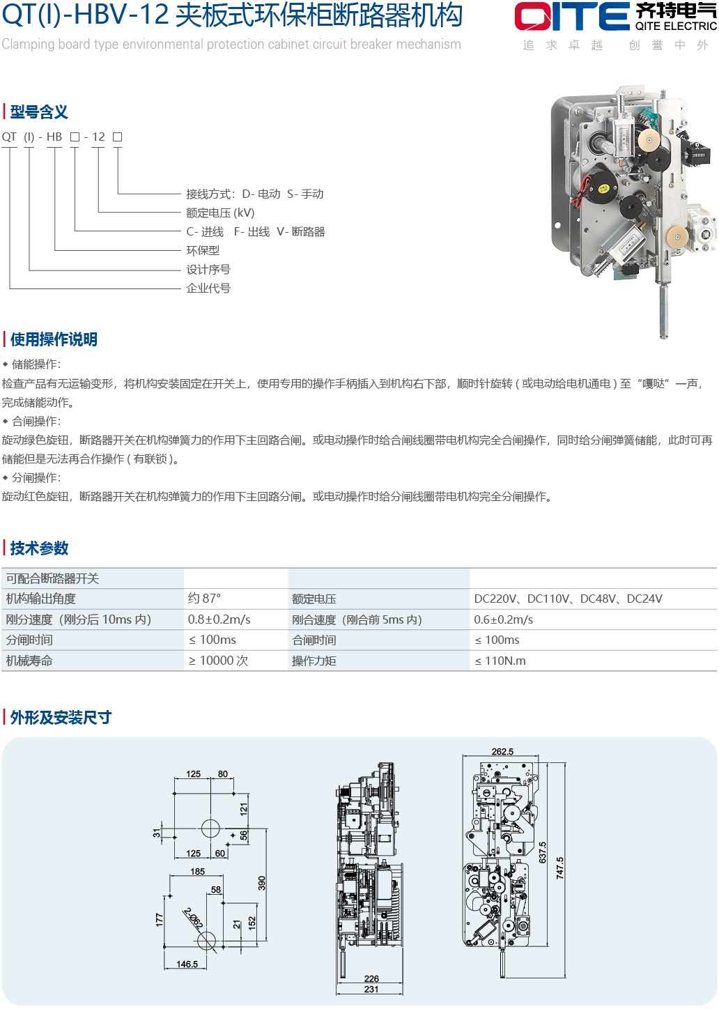 QT(Ⅰ)-HBV-12 夹板式环保柜断路器机构