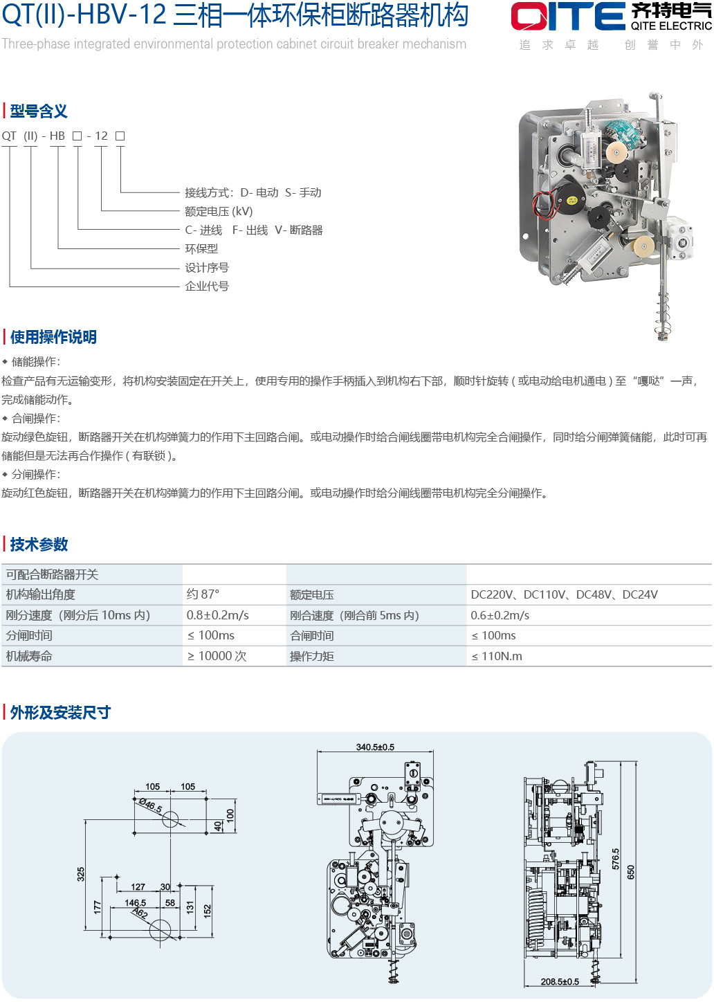 QT(Ⅱ)-HBV-12 三相一体环保柜断路器机构