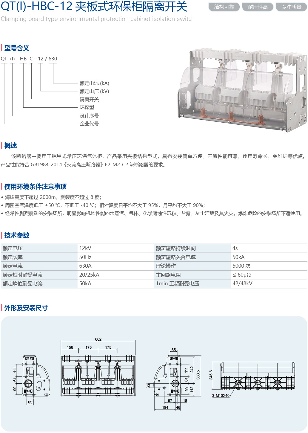QT(Ⅰ)-HBV-12 夹板式环保柜隔离开关