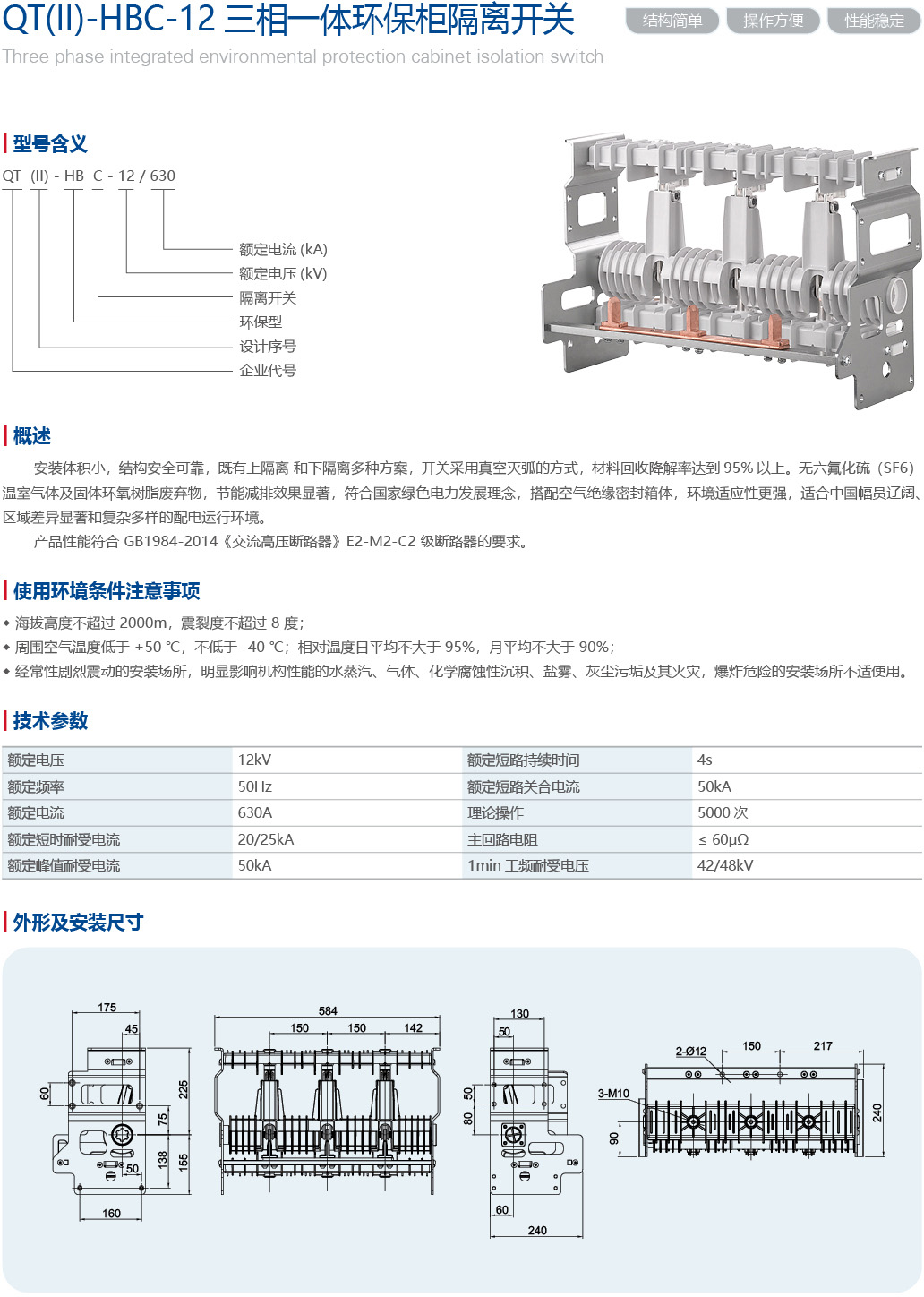 QT(Ⅱ)-HBV-12 三相一体环保柜隔离开关