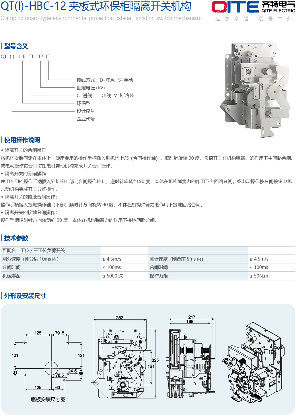 QT(Ⅰ)-HBC-12 夹板式环保柜隔离开关机构